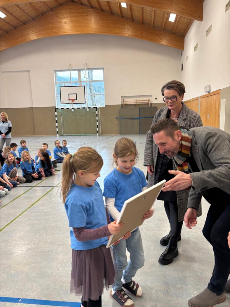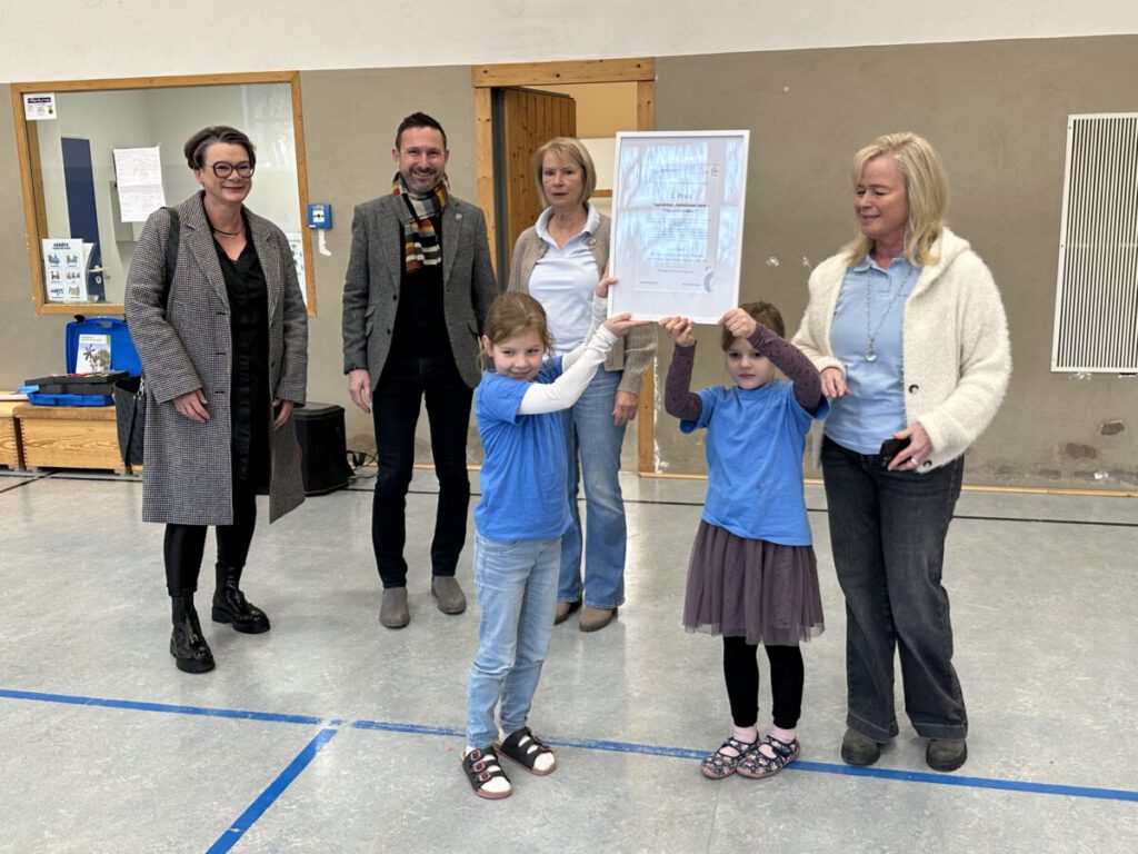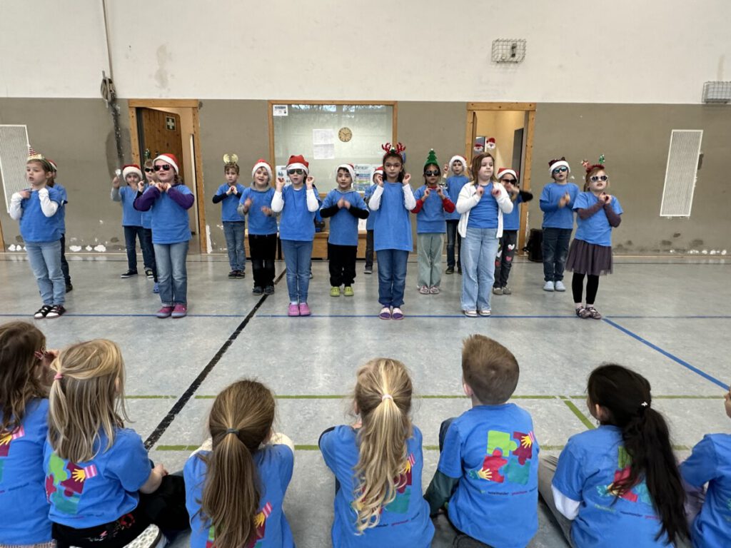 Die feierliche Preisverleihung fand in der Turnhalle der Schule statt. Neben Bürgermeister Björn Jarosz war auch eine Vertreterin der Klimaagentur im Kreis Olpe e. V. anwesend. Zum Auftakt präsentierte die gesamte Schulgemeinschaft gemeinsam das „Gute-Laune-Lied“, bevor Klasse 2 offiziell der erste Platz verliehen wurde. Anschließend richteten Bürgermeister Jarosz und Schulleiterin Frau Göbel-Kohtz ihre Grußworte an die Kinder. Den Abschluss bildete ein fröhlicher Weihnachtstanz der Siegerklasse.