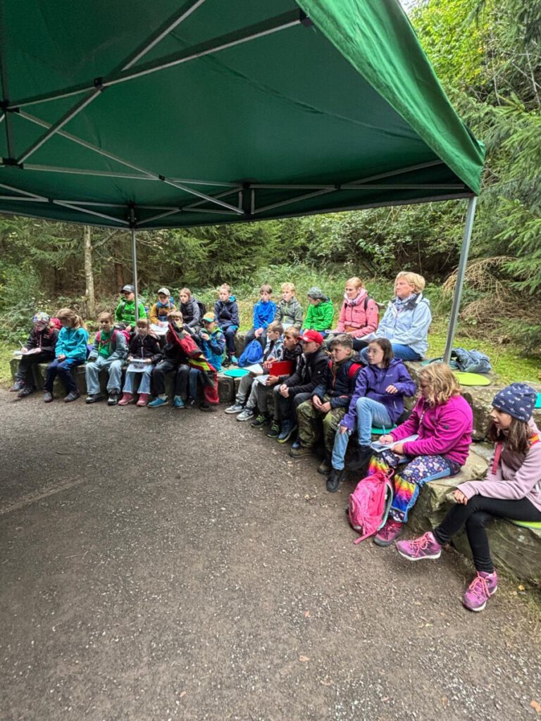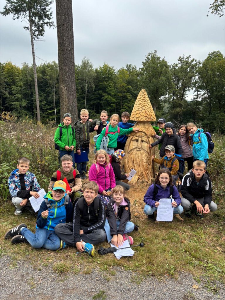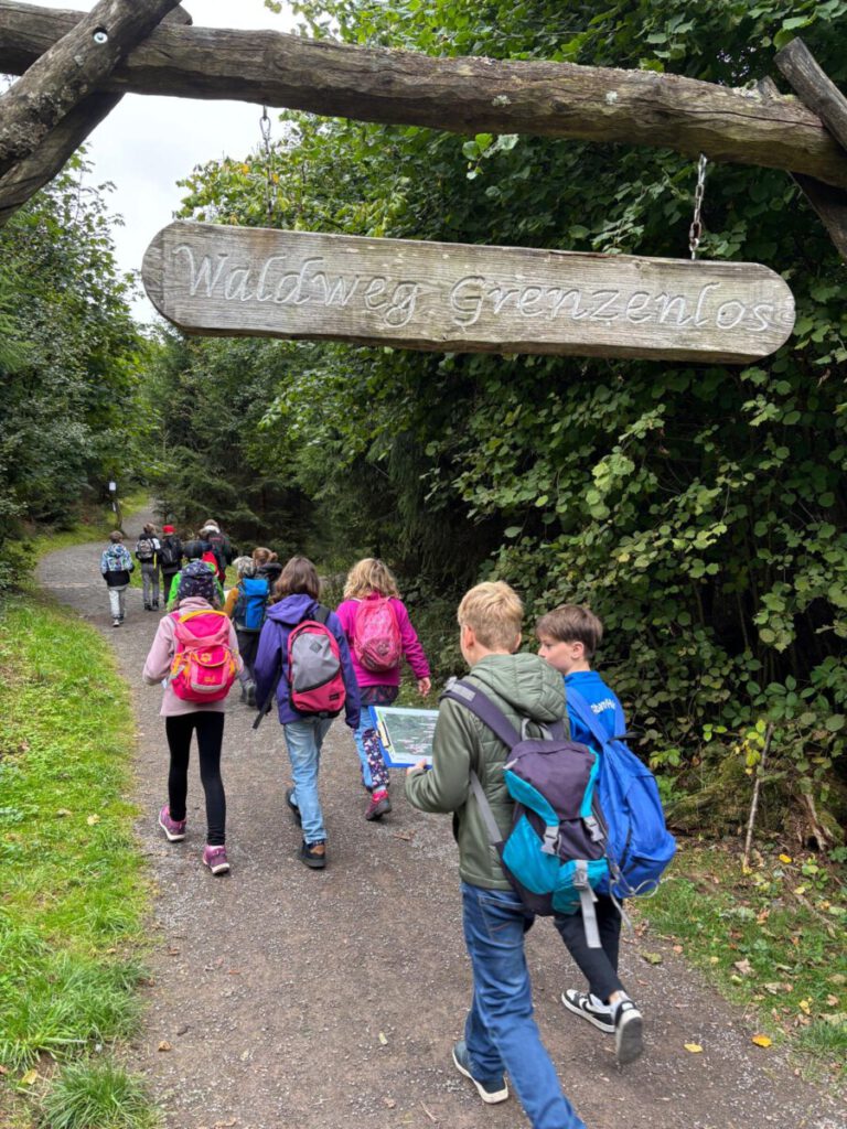 Am Donnerstag, dem 18.09.25 nahmen wir, die Klasse 4 mit unseren Lehrer*innen und unserer Betreuungskraft an den diesjährigen Waldjugendspielen teil, die in Olpe im Waldweg Grenzenlos stattfanden.
