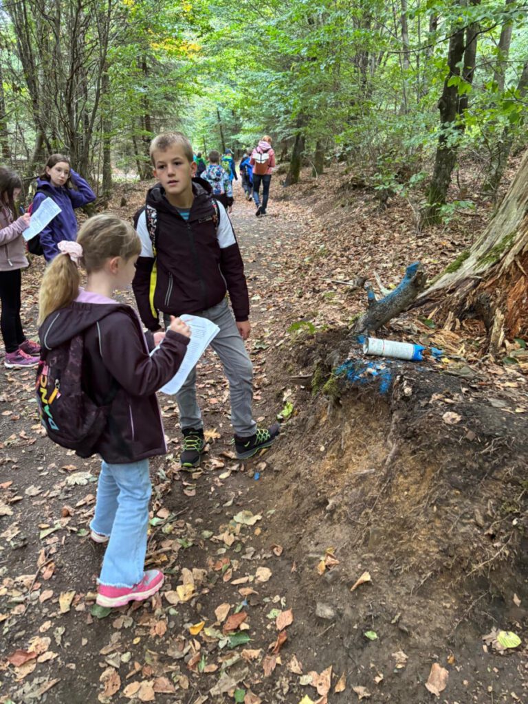 Wir haben sehr viele Entdeckungen gemacht und vieles über den Wald erfahren. Es gab Stationen, bei denen uns z. B. eine Forstwirtin etwas über die Schutzausrüstung und die wichtigsten Arbeitsgeräte erzählt hat, und uns diese auch vorgeführt hat. Die große Motorsäge war unglaublich laut. Jetzt wissen wir, warum beim Arbeiten im Wald ein Hörschutz getragen wird.